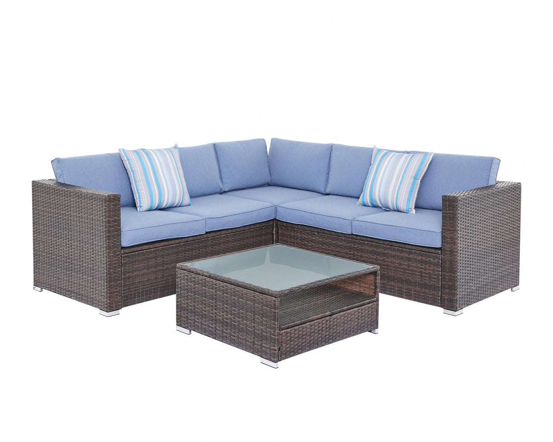 Zenith 4PC Corner Sofa Set w/ Blue Cushions