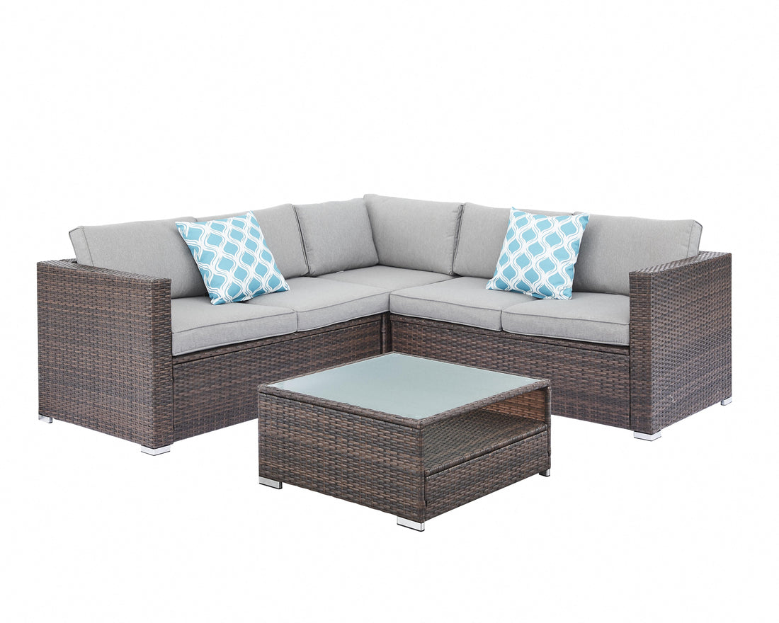 Oasis 4PC Corner Sofa Set w/ Grey Cushions