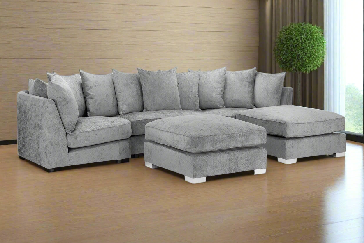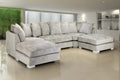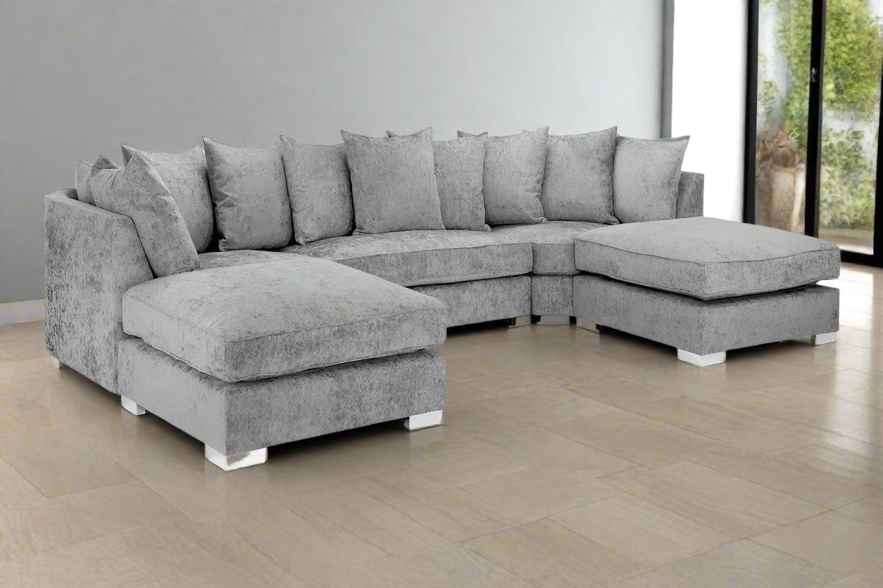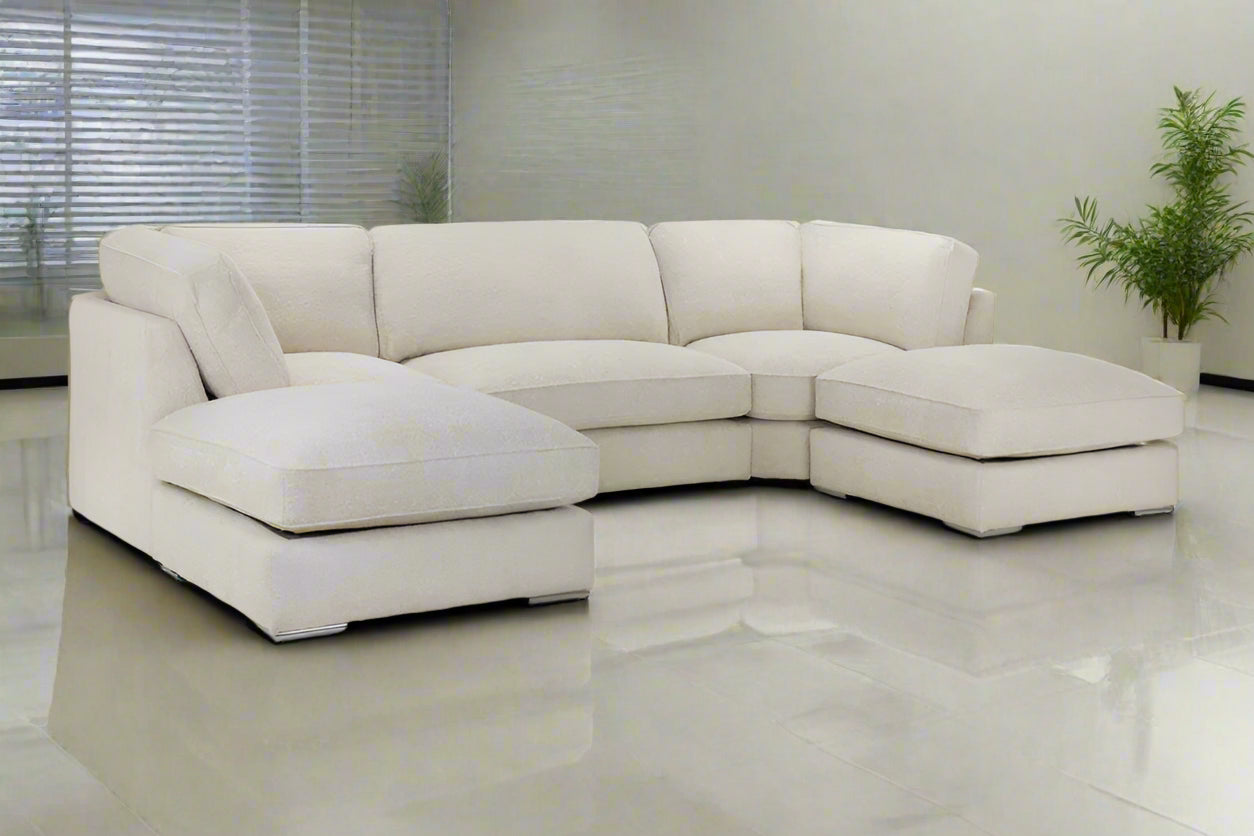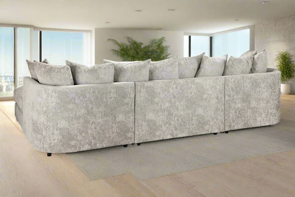 The Bishop is a stunning, large U-shape Scatterback sofa that's sure to command any living space. With oodles of seating space this sofa is perfect for the whole family or for simply stretching out and getting comfy. This sofa features a stunning Plush and other fabric that not only looks great but also endures wear more than most fabrics. With soft, deep-set cushions this sofa is as comfy as it is stylish! Transform your living room into the ultimate relaxation zone with the Bishop U-shape Scatterback Sofa.