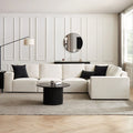 The Brooklyn Large Right Hand L-Shape Modular Sofa in Ivory Chenille transforms any contemporary living space with its elegant design and functionality. Perfect for family gatherings, entertaining friends, or solo relaxation with your favorite entertainment, this spacious corner sofa features clean, modern lines and premium textured chenille in timeless ivory. Experience unmatched comfort with fiber-filled back cushions and durable pocket sprung seats that maintain their shape and support. Enhance your sofa's appeal with our exquisite cushion and throw collection. Delivered in five convenient pieces for straightforward assembly, you'll be lounging in luxury almost immediately. Complete instructions included for hassle-free setup. (Pouffe available separately.)