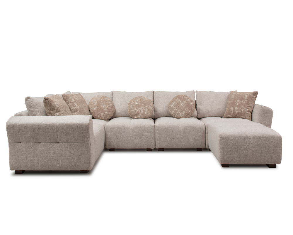 The Chloe Modular Corner Sofa with footstool offers versatile seating tailored to your living space. Its modular design allows for easy reconfiguration, adapting to different room layouts and needs. Crafted with durable materials, it ensures long-lasting comfort and support. The included footstool enhances relaxation, providing an ideal spot to rest your feet or extra seating when needed. Perfect for both contemporary and classic interiors, this sofa combines functionality with refined style.