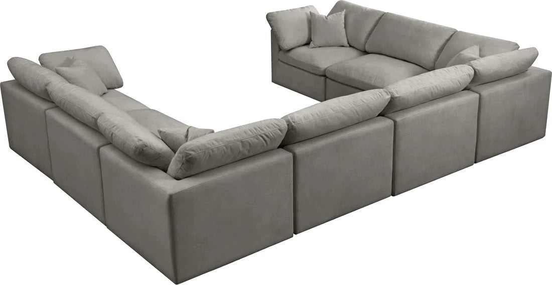 No matter how big or little the size of your gang, they can all find their sweet spot when you choose pieces from the Plush collection to build your ideal seating group. Choose this individual Plush piece or pair multiple pieces together to get the custom look everyone will love. The soft grey velvet material is soft and welcoming to the touch, and the set's cushions are overstuffed with a down and feather blend to provide ample support for tired bodies.