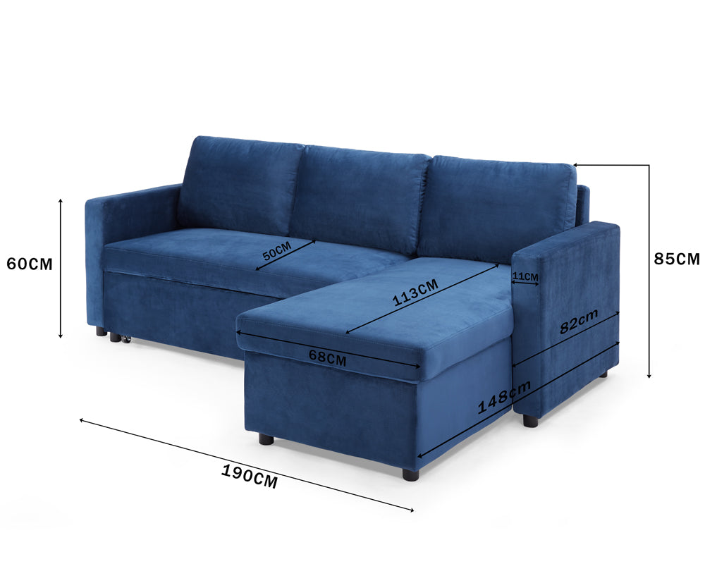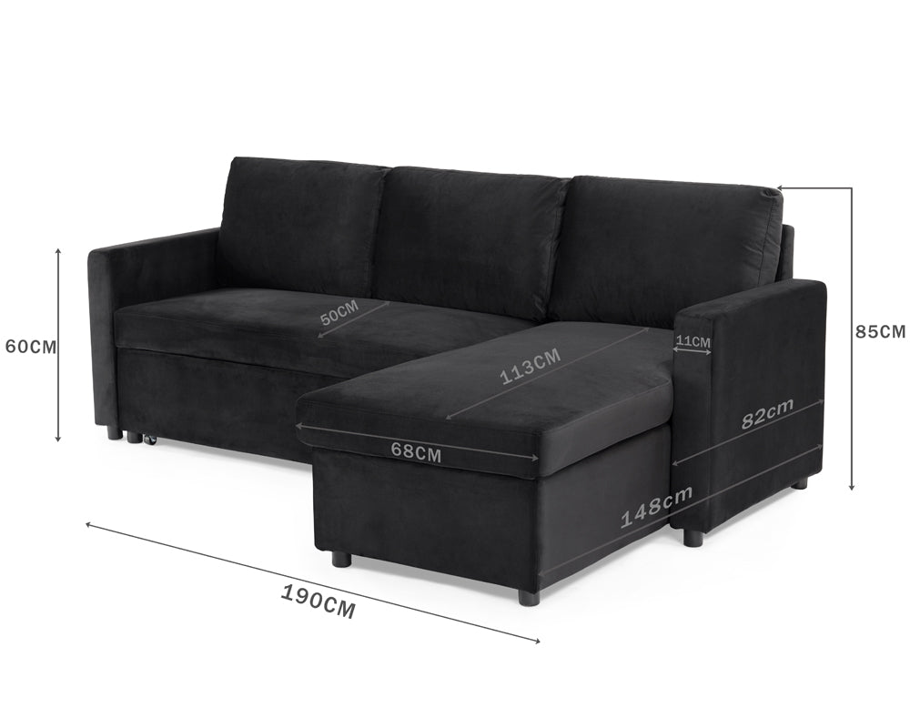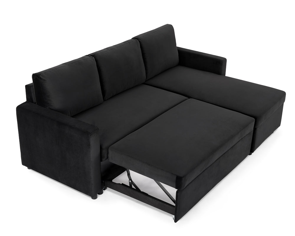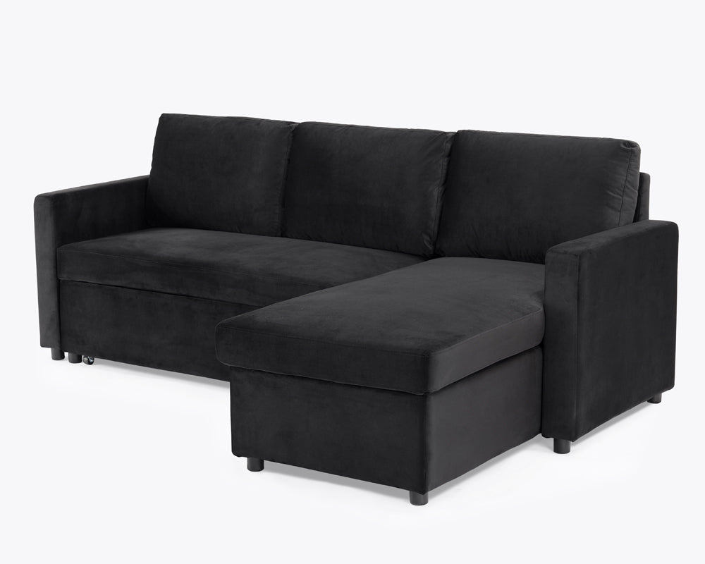 The Haven is available in three sophisticated shades to complement your décor: elegant Grey Velvet, deep Navy Velvet, and classic Black Velvet. Its clever pull-out mechanism makes converting it into a spacious bed quick and easy, ensuring you're always ready for overnight stays without compromising on style.