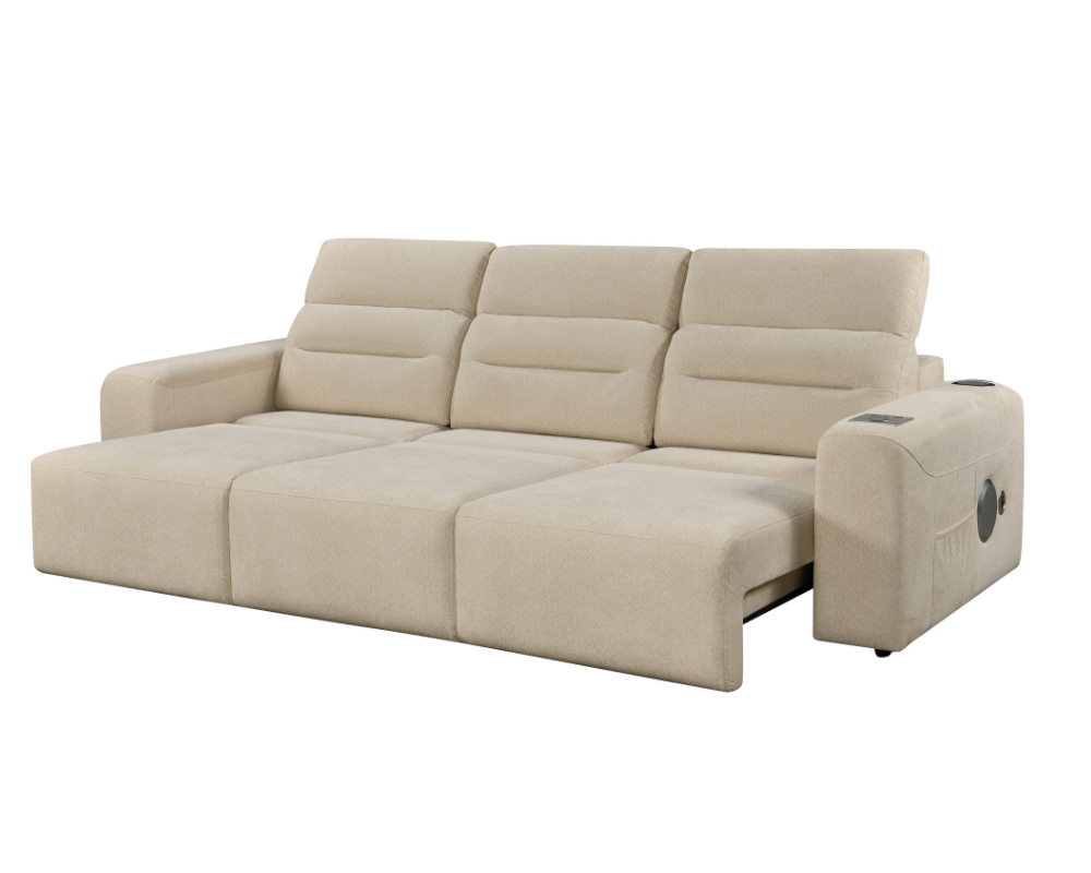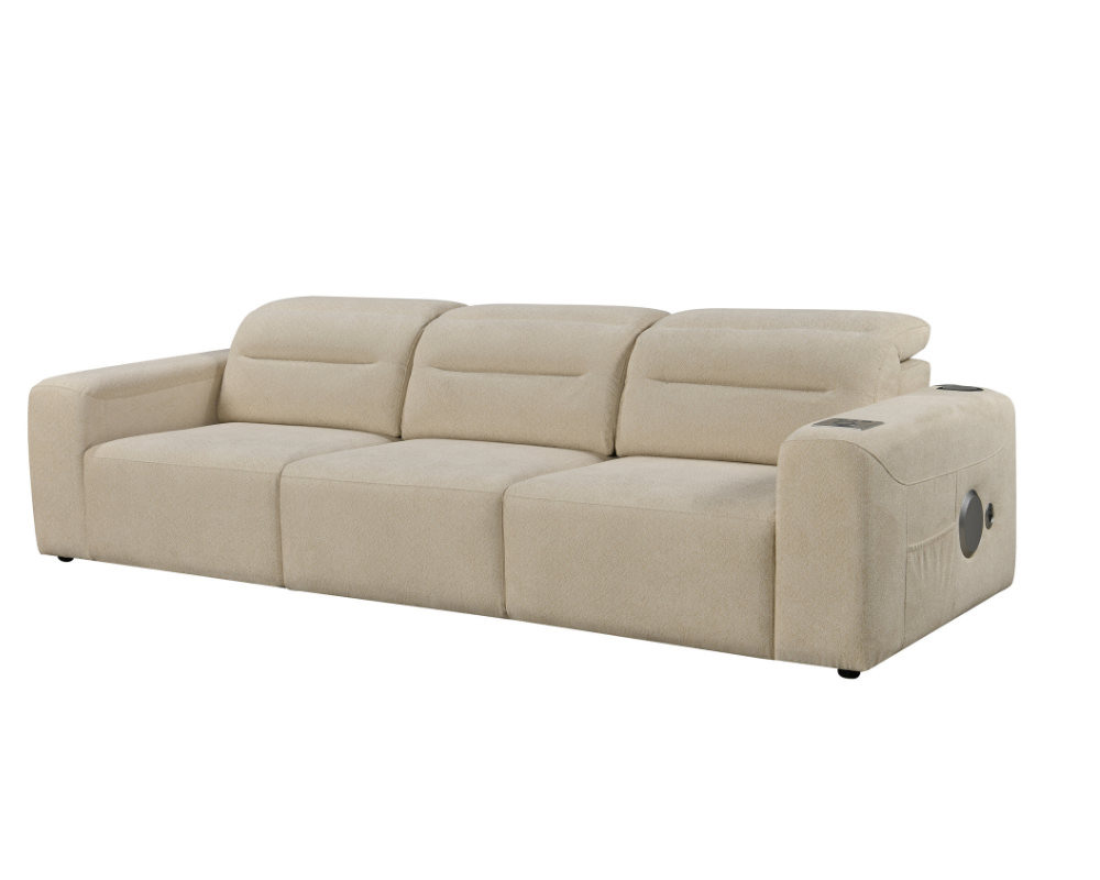 Mayfair 3 seater Electric Sliding seats Cream with Bluetooth speakers || Wireless charger || USB port