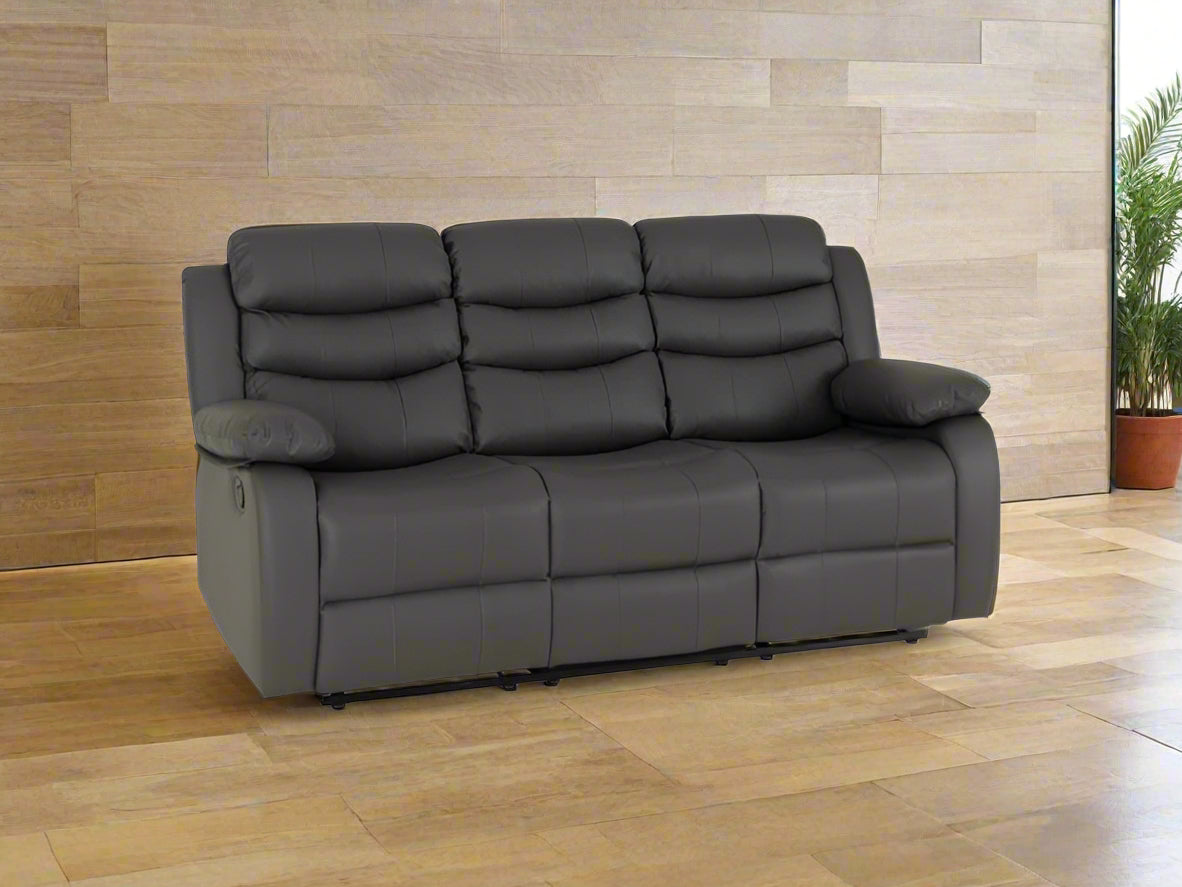 Roma Black Leather Recliner Sofa with Cupholders - 3+2 Seater