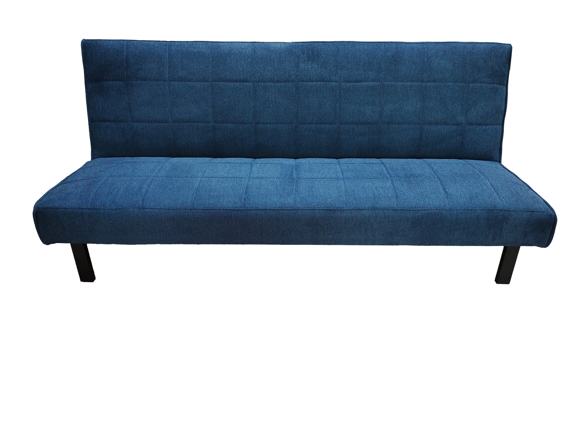 Upholstered in a durable, soft-touch fabric with a subtle woven texture, this sofa features a contemporary square-stitched pattern across the seat and backrest, offering a clean and geometric look that complements both minimalist and modern interiors. The click-clack mechanism allows you to easily adjust the backrest into three positions — upright, reclined, or fully flat — creating a comfortable lounging or sleeping area.