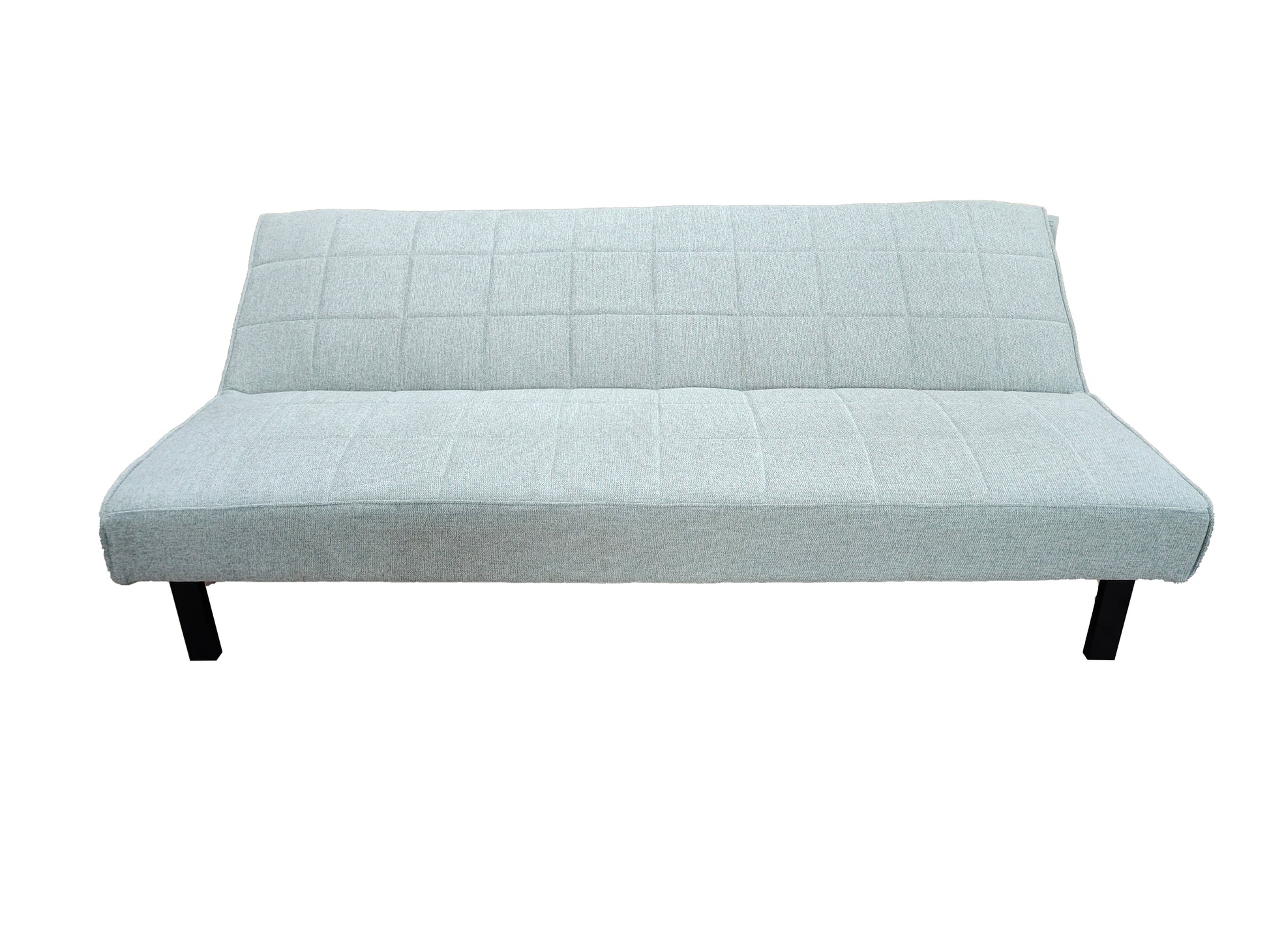 Upholstered in a durable, soft-touch fabric with a subtle woven texture, this sofa features a contemporary square-stitched pattern across the seat and backrest, offering a clean and geometric look that complements both minimalist and modern interiors. The click-clack mechanism allows you to easily adjust the backrest into three positions — upright, reclined, or fully flat — creating a comfortable lounging or sleeping area.